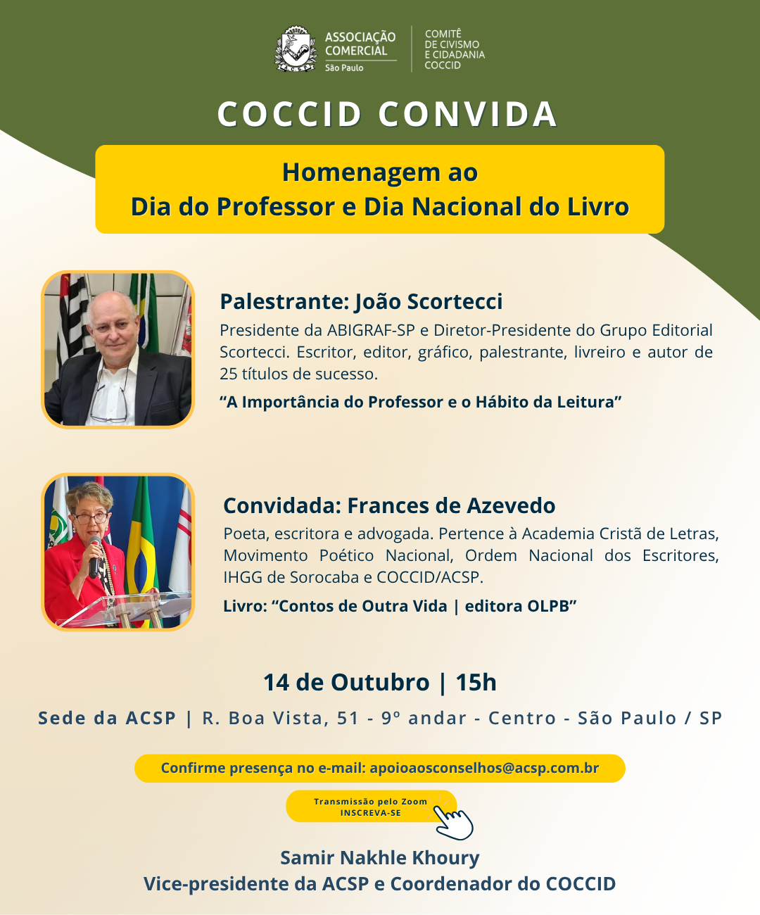 COCCID CONVIDA: Homenagem ao Dia do Professor e Dia Nacional do Livro