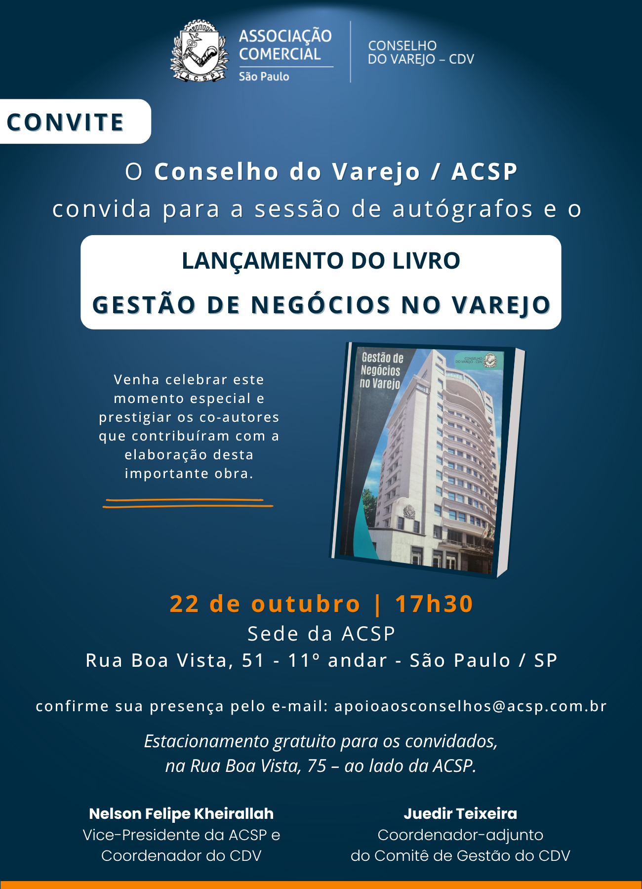 O Conselho do Varejo (CDV) convida para a sessão de autógrafos e o lançamento do livro "Gestão de Negócios no Varejo"
