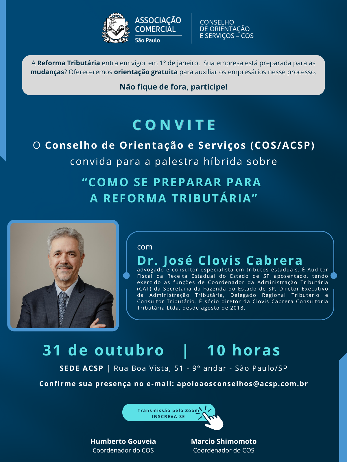 Participantes presenciais: Necessário a confirmação de presença no e-mail: [email protected].