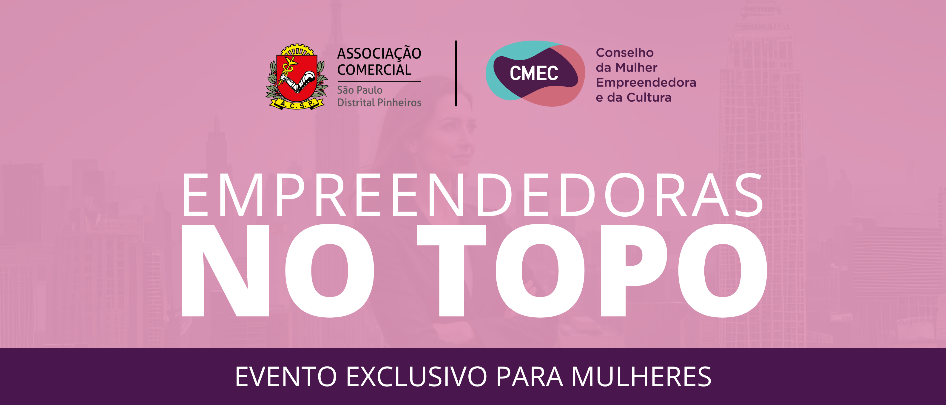 O evento Empreendedoras no Topo vai reunir mulheres inspiradoras que estão fazendo acontecer. Será um dia de troca, conexões reais e muito aprendizado pra você dar o próximo passo rumo ao sucesso. Porque o topo é seu lugar — e juntas, a gente chega lá!