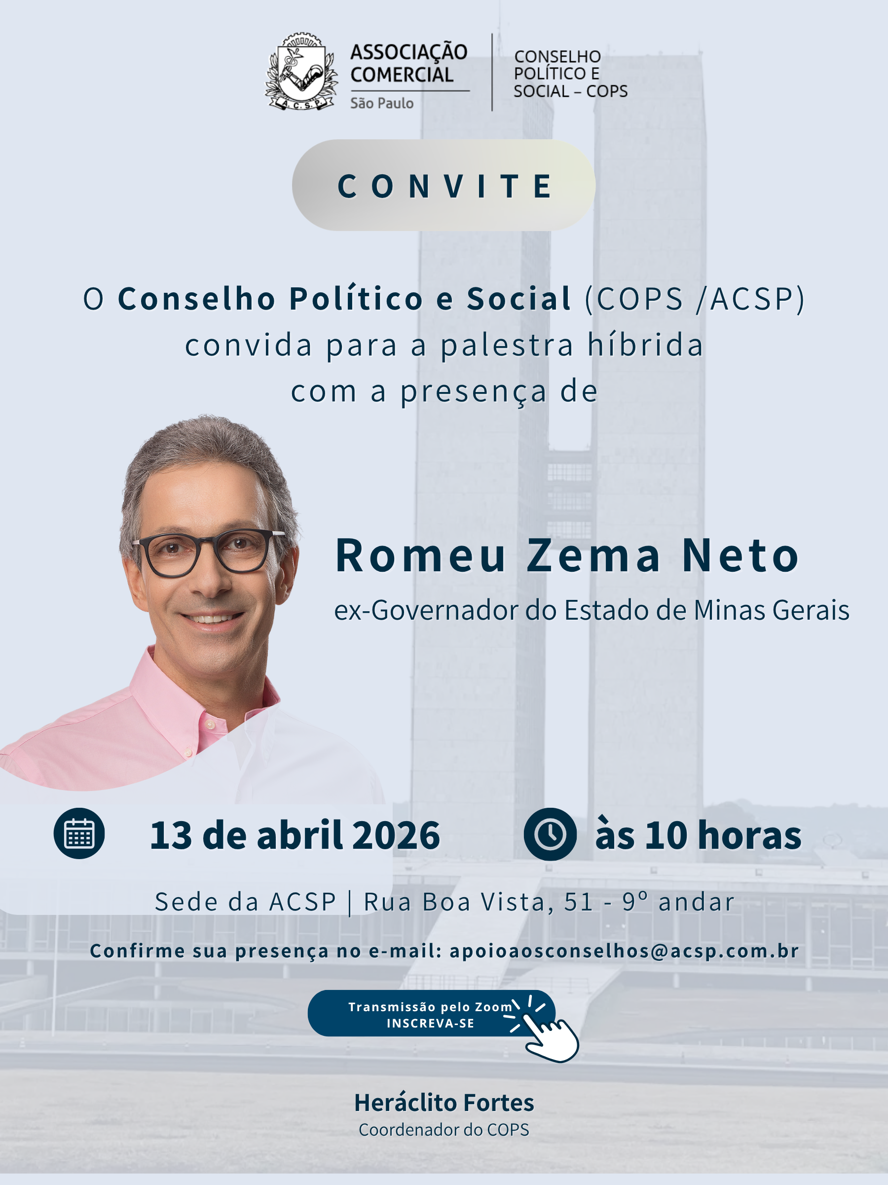 Reunião híbrida do COPS/ACSP, com a presença do ex-Governador do Estado de Minas Gerais Romeu Zema Neto