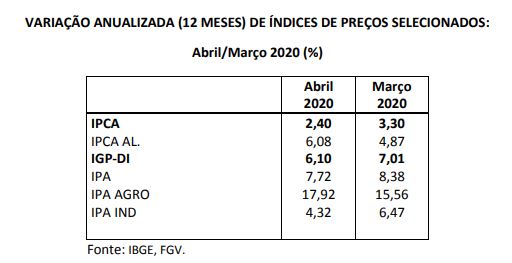PANDEMIA PROVOCA QUEDA DOS PREÇOS EM ABRIL, LEVANDO RESULTADO