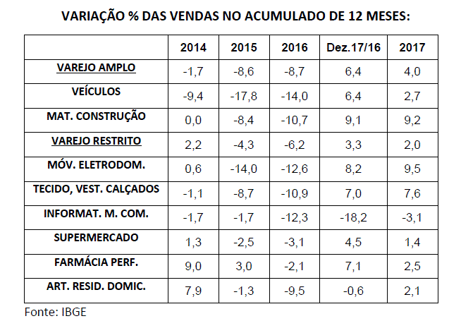 Em síntese, há uma indiscutível recuperação das vendas após 9 meses de altas consecutivas mensais. Mas, o ritmo de recuperação oscila bastante e se assemelha a uma linha "dente de serra". Além disso, a retomada é muito desigual entre os vários ramos. A perspectiva para 2018 é de aceleração do crescimento com a Selic de 6,75% a.a. e que pode cair mais um pouco se a reforma da previdência avançar e não ocorrer maior turbulência nos mercados financeiros internacionais.
