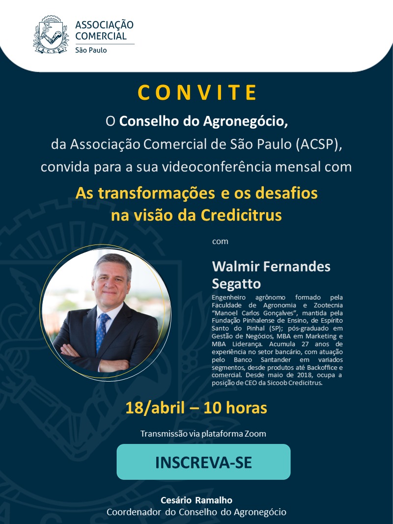 Para falar sobre o tema, colegiado recebe no próximo dia 18 de abril o CEO do Sicoob Credicitrus, Walmir Segatto